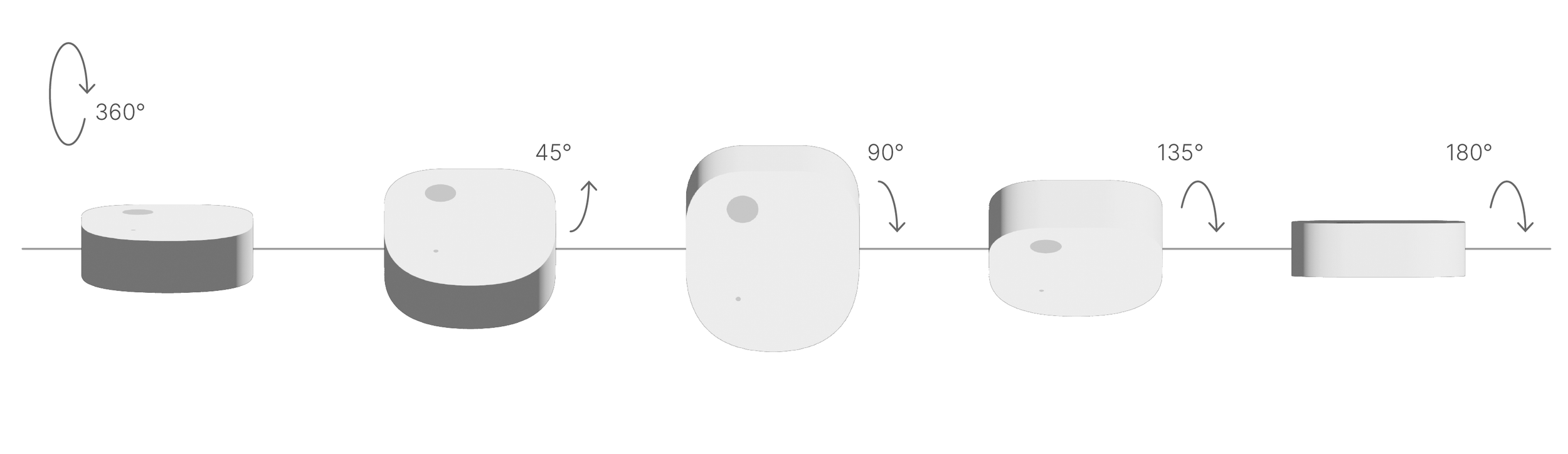 Slowly rotate each sensor sideways around the X axis in 45-degree increments, pausing at each 45 degree angle for 3 seconds.